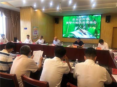 为加强境内外蝗虫防治工作,有效防范防治沙漠蝗、黄脊竹蝗等迁入威胁,提升西南边境地区监测预警和应急防空能力,2020年7月27日,由农业农村部植业管理司和全国农技中心在中国和老挝边境云南省普洱市江城县召开黄脊竹蝗防治现场会,举行黄脊竹蝗应急防控实战演练,召开座谈会分析研判境内外黄脊竹蝗发生发展态势,研究部署西南边境地区黄脊竹蝗防控工作。鹤壁佳多科工贸股份有限公司应邀参加本次活动。